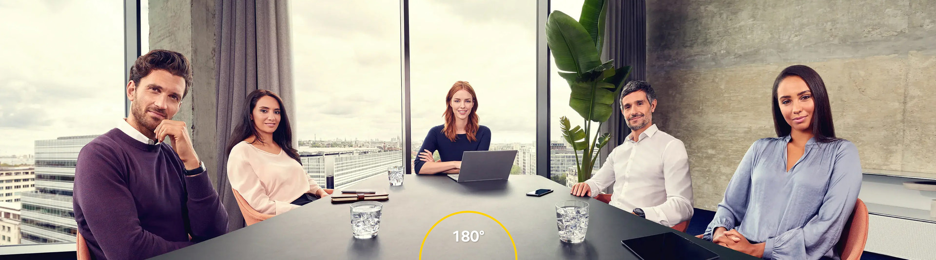 180° 화각의 파노라믹-4K 비디오로 회의실 전체를 빠짐 없이 모두 포착하여 화면 안에 보여줍니다.